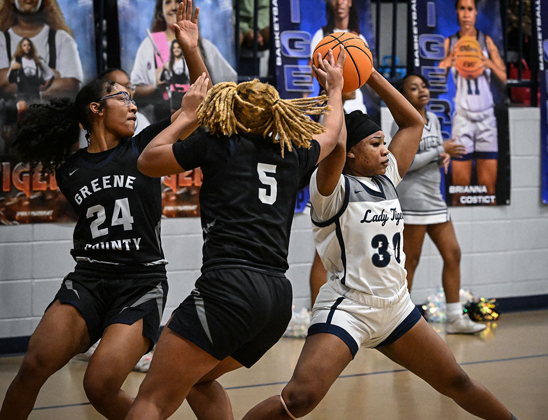 After dropping a pair of games in the regular season to top seeded Greene County, the second-seed Lady Tigers toppled the Lady ‘Cats 31-21 in the league tourney title tilt here at home in Arthur Haynes Gymnasium on the Moss Point High School campus.