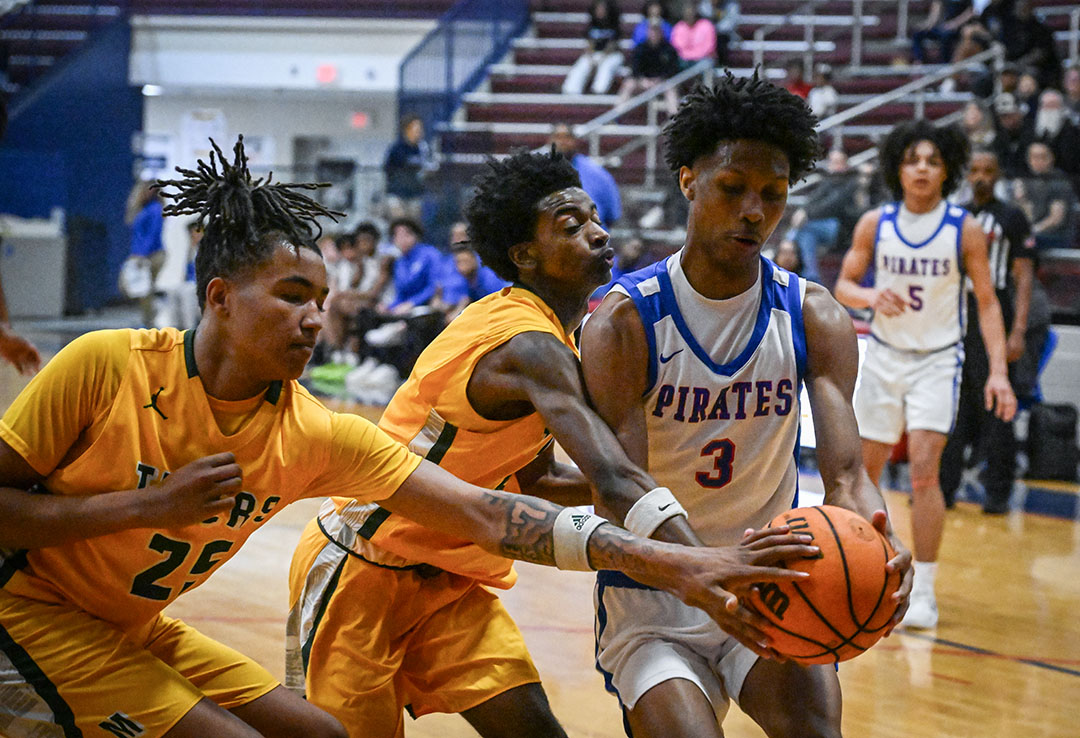 “We had the advantage the whole game with our size, but we weren’t taking advantage of that in the first half,” said Pirates’ coach Robin Sikes. “Our guys were playing soft with jelly hands, not catching the basketball. We’ve got to be a whole lot better if we’re going to make a deep run.
