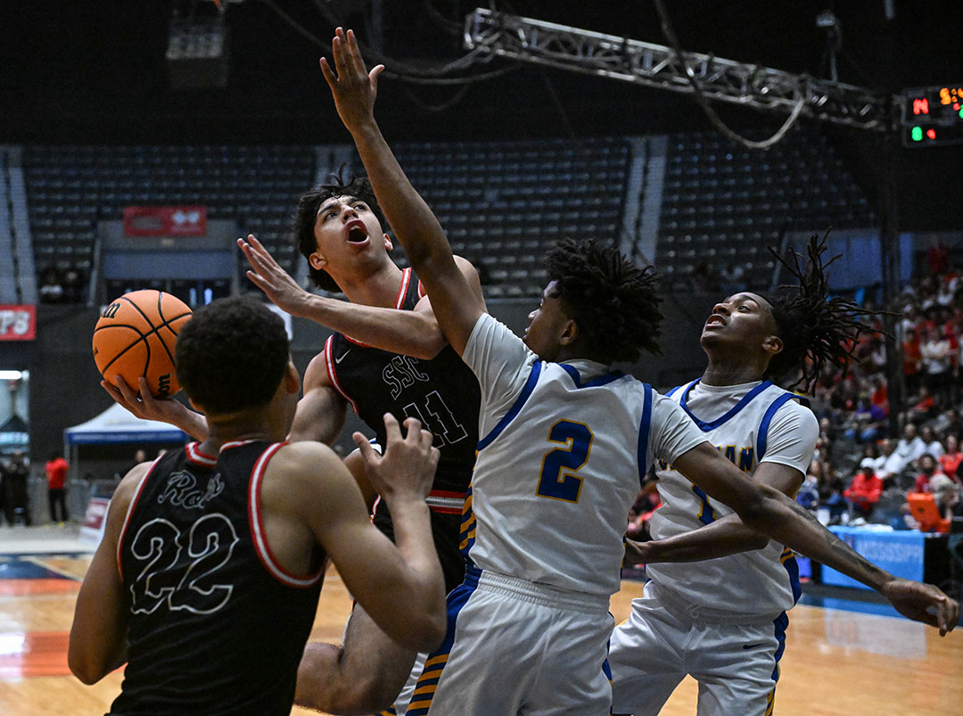 Senior standout and Dandy Dozen center Max Baria got SSC off to a lead it would never relinquish on the first trip down the court for the Rocks when he nailed a baby hook from 5-feet out in the lane. His two free throws and a short jumper from Alan Gilliam made it 8-0 SSC at the 4:48 mark of the opening period.